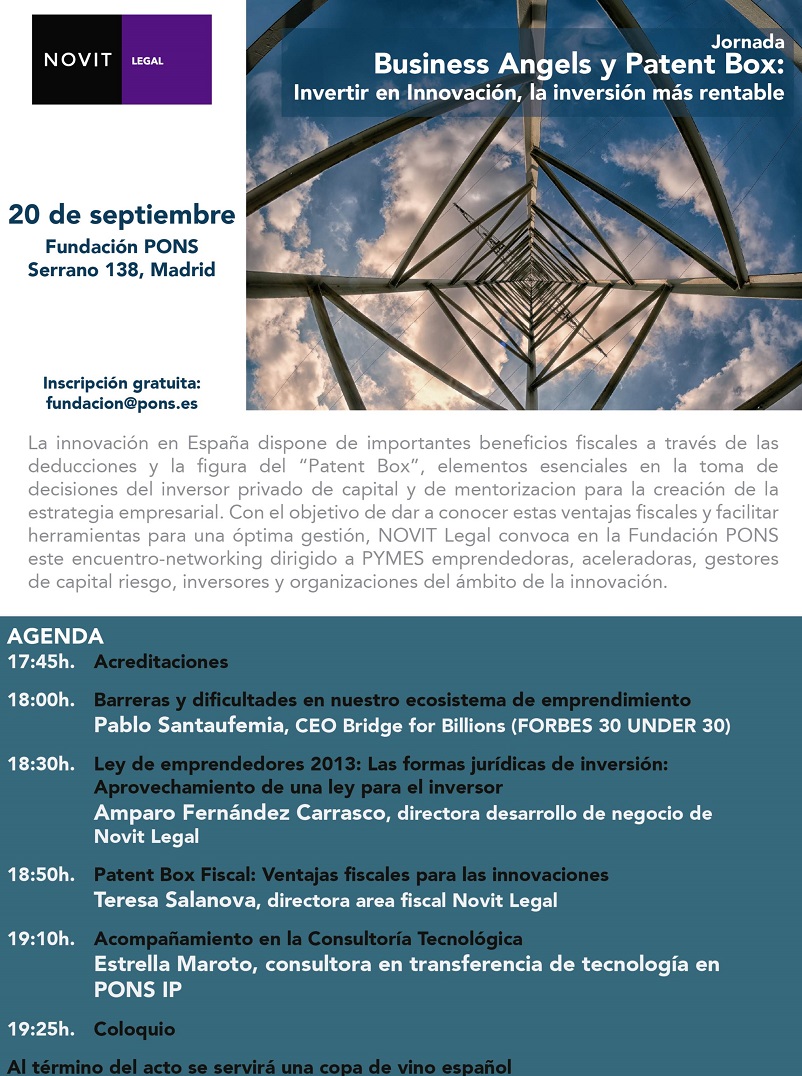 Agenda Business Angels Derecho Fundación Pons Inversión Normativa Patent Box Pons Propiedad Industrial