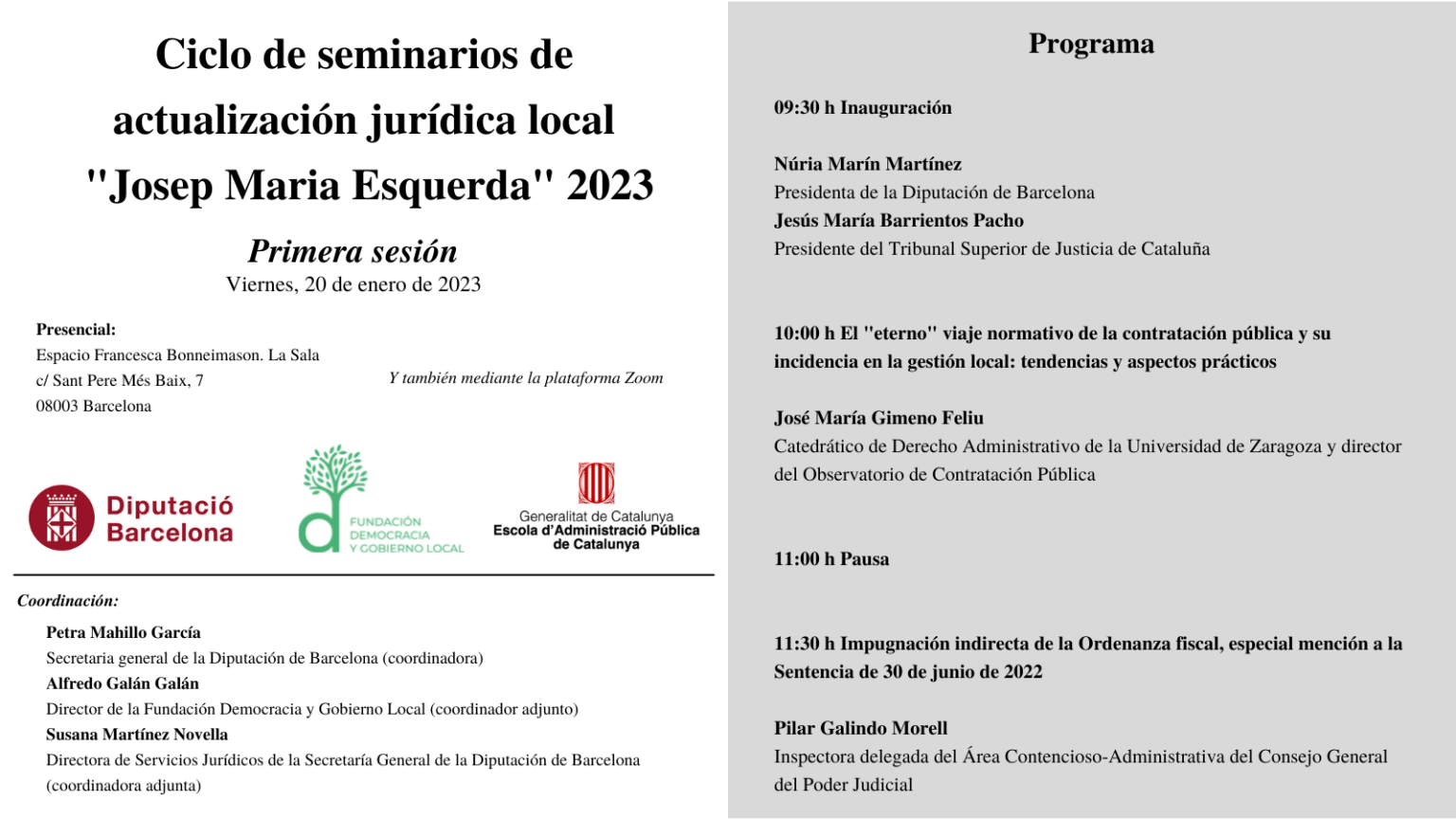 Ciclo de seminarios de actualización jurídica local Josep Maria Esquerda 2023 ? Primera sesión