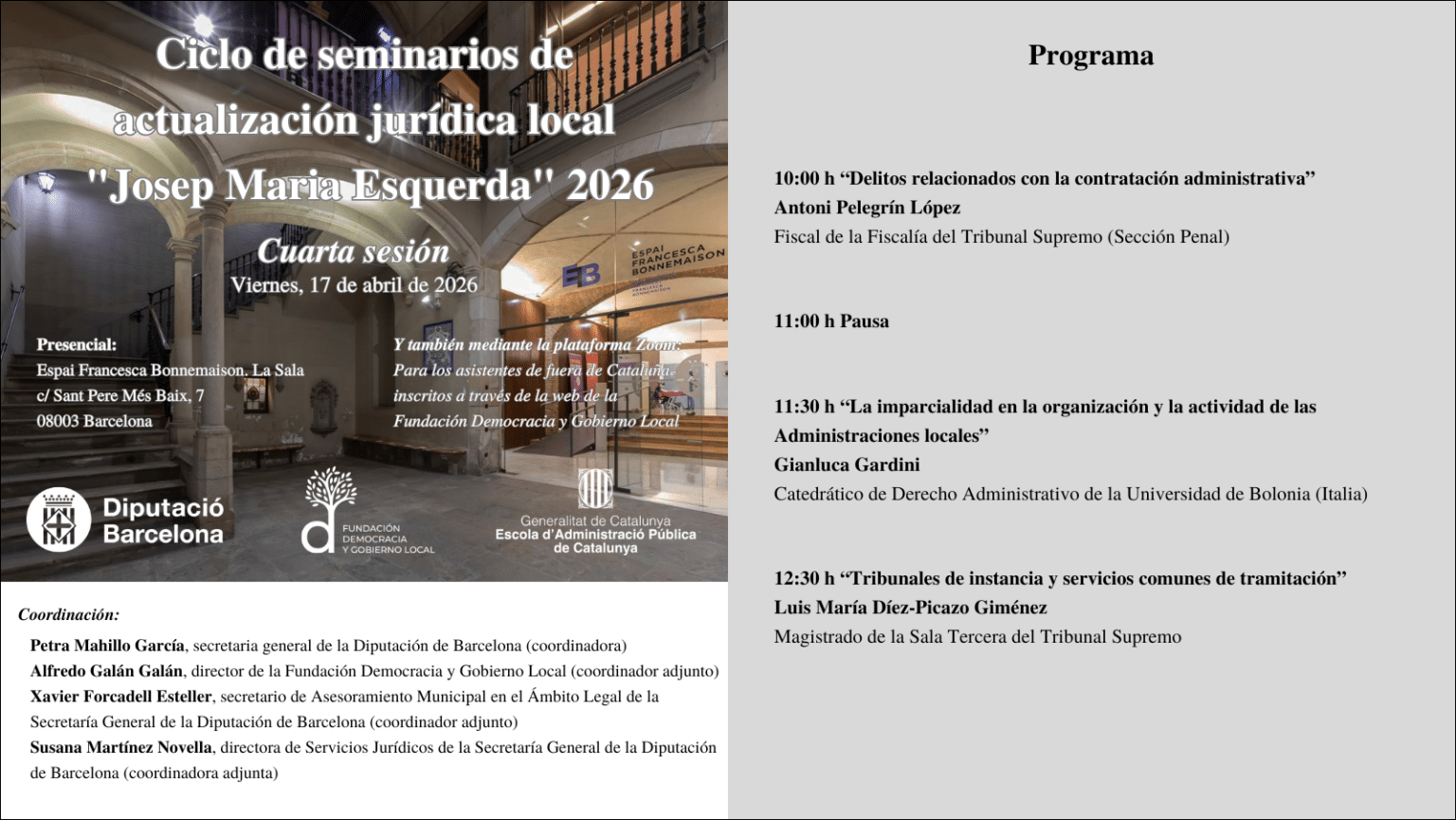 Ciclo de seminarios de actualización jurídica local Josep Maria Esquerda 2026 Cuarta sesión