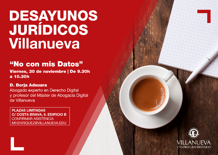 Mañana celebraremos el Desayuno Jurídico “No con mis datos”, en el que Borja Adsuara, abogado experto en Derecho Digital y profesor del Máster de Abogacía Digital de Villanueva, hablará de un tema de gran actualidad: la nueva Ley Orgánica de Protección de Datos. Estaba previsto que la Ley se aprobara con la misma unanimidad que había concitado en el Congreso pero, al final, no fue así por la polémica que ha suscitado en los últimos días la Disposición Final 3ª, que añade un nuevo artículo (58 bis) a la Ley Orgánica del Régimen Electoral General que ampara a los partidos para recopilar “datos personales” de “opiniones políticas”, sin previo consentimiento del ciudadano, autorizándoles a acceder a sus redes sociales, correos electrónicos o apps.